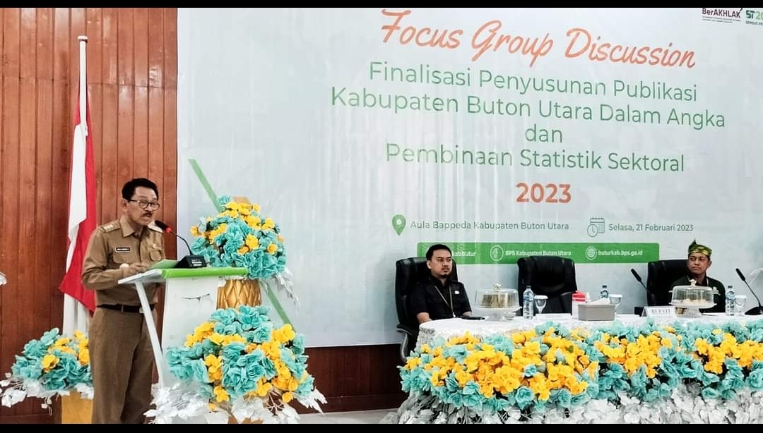 Butur, Jurnalsultra.id – Bupati Buton Utara (Butur), Dr. H. Muhammad Ridwan Zakariah, M.Si., membuka acara Focus Group Discussion (FGD) finalisasi penyusunan publikasi Kabupaten Buton Utara dalam angka dan pembinaan statistik sektoral 2023 di Aula Bappeda Butur, Selasa, 21 Februari 2023.