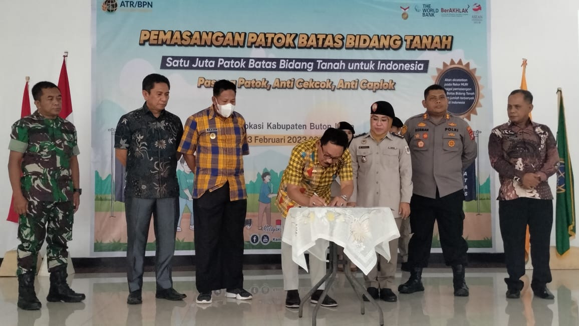 Butur, Jurnalsultra.id – Hadiri pencanangan Gerakan Masyarakat Pemasangan Tanda Batas (Gemapatas) satu juta patok. Bupati Buton Utara mengharapkan dapat bermanfaat untuk masyarakat yakni, memberikan jaminan kepastian hukum dan perlindungan hukum hak atas tanah rakyat secara adil dan merata.