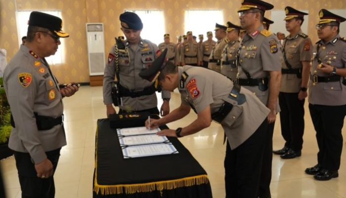 Penandatanganan serah terima jabatan beberapa Kapolres dan Pejabat Utama Polda Sultra (Foto : ist).