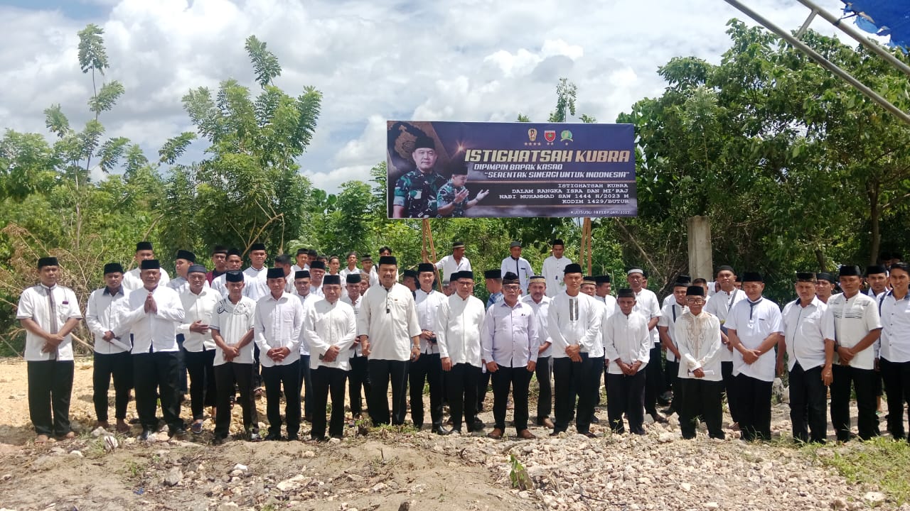 Pantuan Media ini, Keluarga besar Kodim 1419/Butur bersama ratusan masyarakat setempat berbondong mengikuti istighosah doa keselamatan bangsa sebagai momentum peringatan Isra Mi’raj Nabi Muhammad Shallallahu Alaihi Wasallam.