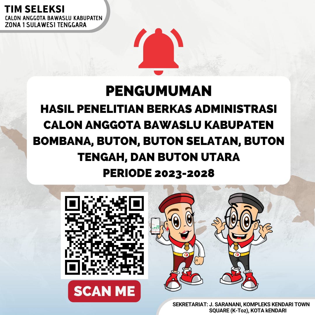 Pengumuman Hasil Penelitian Berkas Administrasi Calon Anggota Bawaslu Zona 1 Sultra