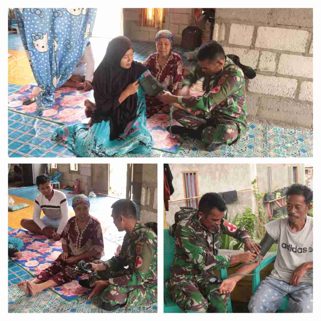 Butur, Jurnalsultra.id – Satuan Tugas TNI Manunggal Membangun Desa (TMMD) Ke -117 Kodim 1429/Butur , Memberikan pelayanan kesehatan gratis dan langsung mendatangi rumah warga Desa Marga Karya , Kecamatan Kulisusu Barat (Kulbar) Kabupaten Buton Utara (Butur), Selasa, 18 Juli 2023..