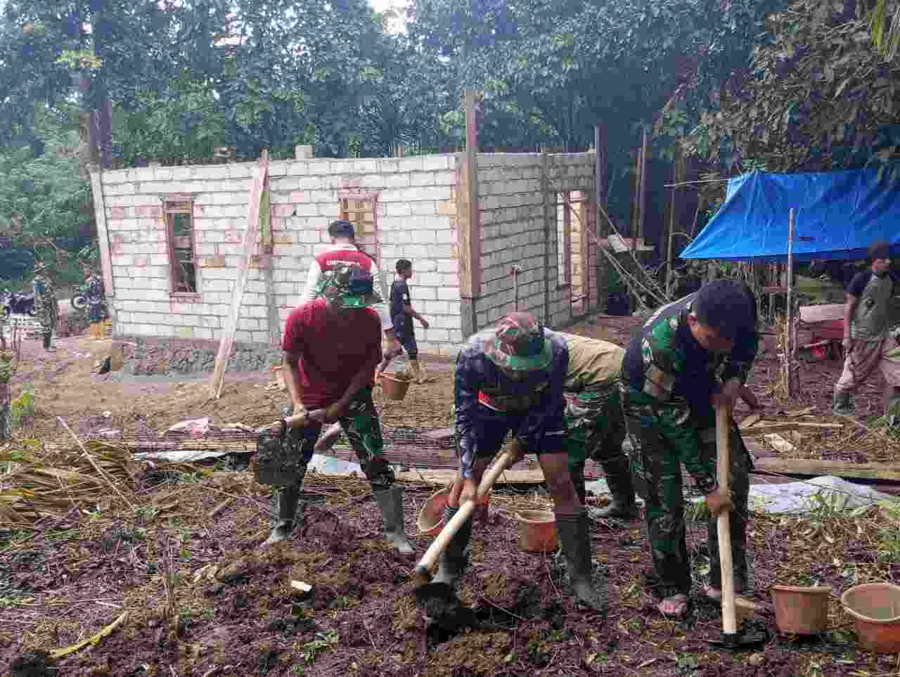 Anggota Satgas TMMD ke 117 Kodimn1429/Butur baju membahu kebut rehab RTLH warga. (Foto.ist)